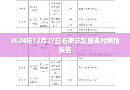 本文旨在报告石家庄赵县在2024年12月27日的实时疫情情况,报告内容包括新增病例数量、疫苗接种进展、医疗资源配置以及防控措施等方面的最新信息,以便公众了解当地疫情形势,并采取相应的防护措施。